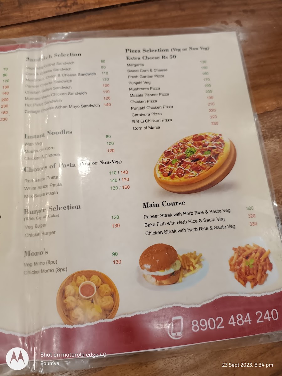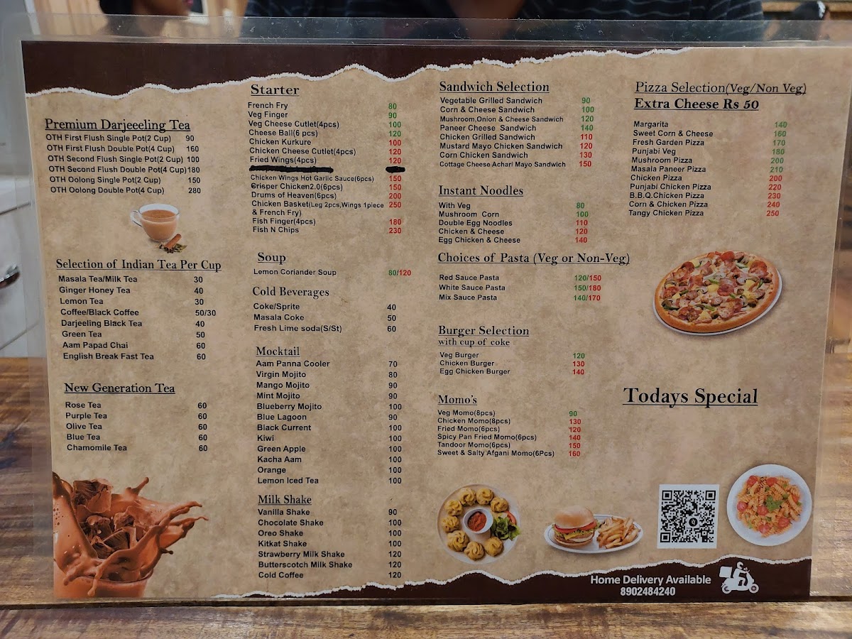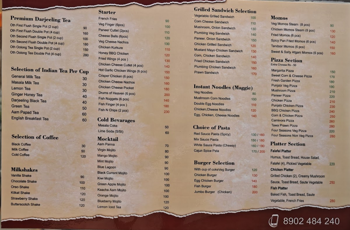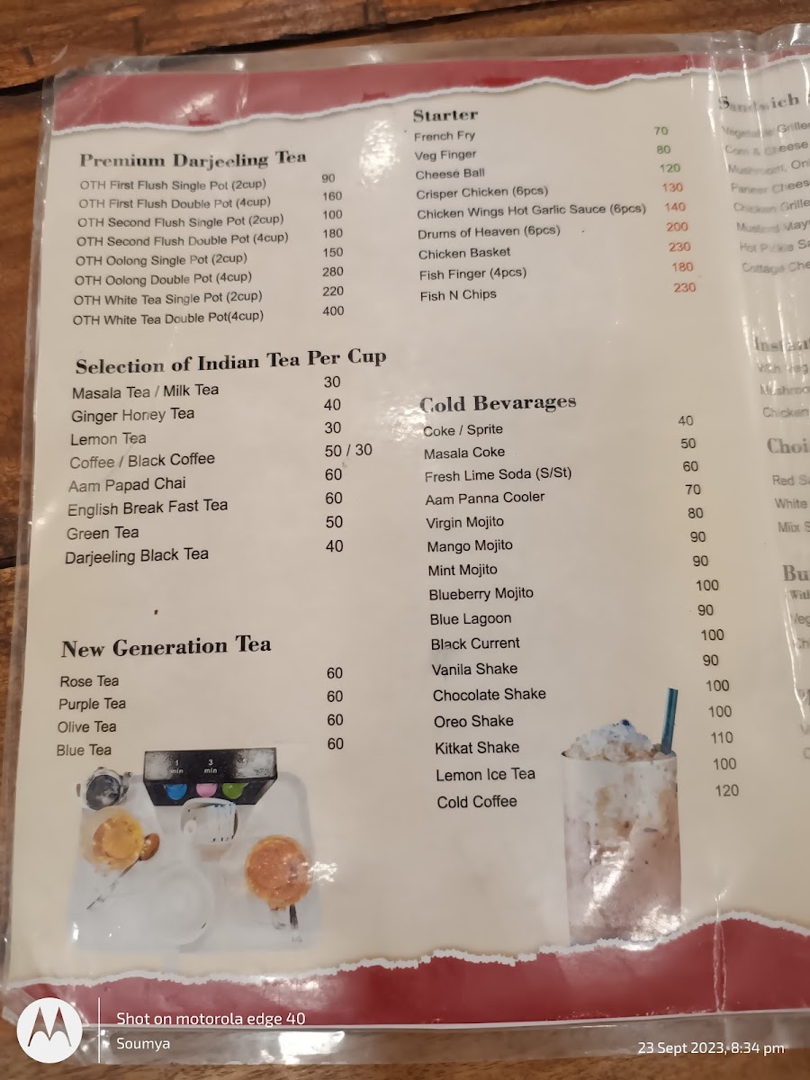 Introducing the menu at Open Tea House Bishnupur, a delightful cafe nestled just opposite the iconic Chinnamasta Temple. This charming spot is renowned for its diverse selection of sandwiches, soups, and enriching milkshakes, all offered at pocket-friendly prices.